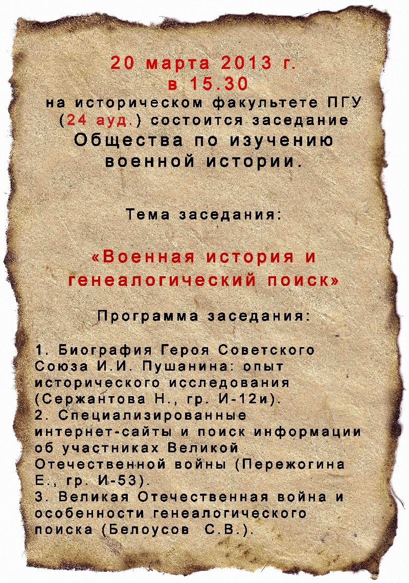 Анонс заседания Студенческого общества по изучению военной истории